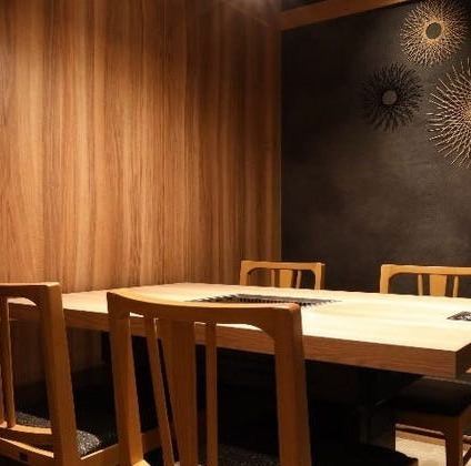[Private room | Up to 2 people] We offer a private room for 2 people, lit with subdued lighting.The chic black color scheme creates a luxurious feel.It is recommended for special occasions such as anniversaries and birthdays, as well as for meals with close friends.